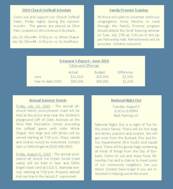 Mid-Week Messenger (July 21, 2010) 페이지 정보 작성자 새길 쪽지보내기 메일보내기 홈페이지 자기소개 아이디로 검색 전체게시물 쪽지보내기 메일보내기 홈페이지 자기소개 아이디로 검색 전체게시물 조회 8,461회 작성일 10-07-21 15:33 댓글 0 본문 이전글 Mid-Week Messenger (July 28, 2010) 다음글Mid-Week Messenger (July 14, 2010) 글쓰기 옵션 더보기 검색 목록 댓글목록 등록된 댓글이 없습니다.