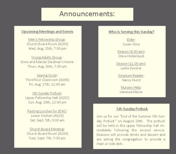 Mid-Week Messenger (August 25, 2010) 페이지 정보 작성자 새길 쪽지보내기 메일보내기 홈페이지 자기소개 아이디로 검색 전체게시물 쪽지보내기 메일보내기 홈페이지 자기소개 아이디로 검색 전체게시물 조회 8,993회 작성일 10-08-25 19:01 댓글 0 본문 이전글 Mid-Week Messenger (September 2, 2010) 다음글Mid-Week Messegner (August 19, 2010) 글쓰기 옵션 더보기 검색 목록 댓글목록 등록된 댓글이 없습니다.