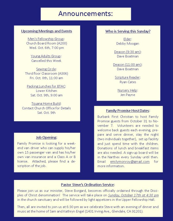 Mid-Week Messenger (October 6, 2010) 페이지 정보 작성자 새길 쪽지보내기 메일보내기 홈페이지 자기소개 아이디로 검색 전체게시물 쪽지보내기 메일보내기 홈페이지 자기소개 아이디로 검색 전체게시물 조회 9,695회 작성일 10-10-06 17:39 댓글 0 본문 이전글 Mid-Week Messenger (October 14, 2010) 다음글Mid-Week Messenger (September 29, 2010) 목록 댓글목록 등록된 댓글이 없습니다.
